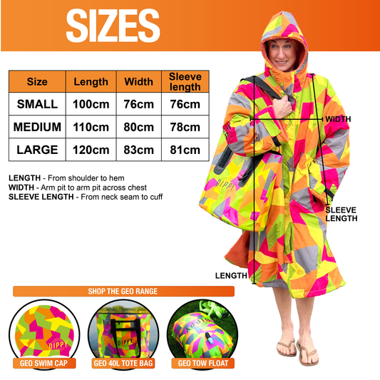 The Geo Range by Dippy has been designed for wild swimmers, paddle boarders, surfers, dog walkers, and anyone who loves the outdoors. Bold and bright colours allows you to stand out from the crowd, even on the dullest of days.