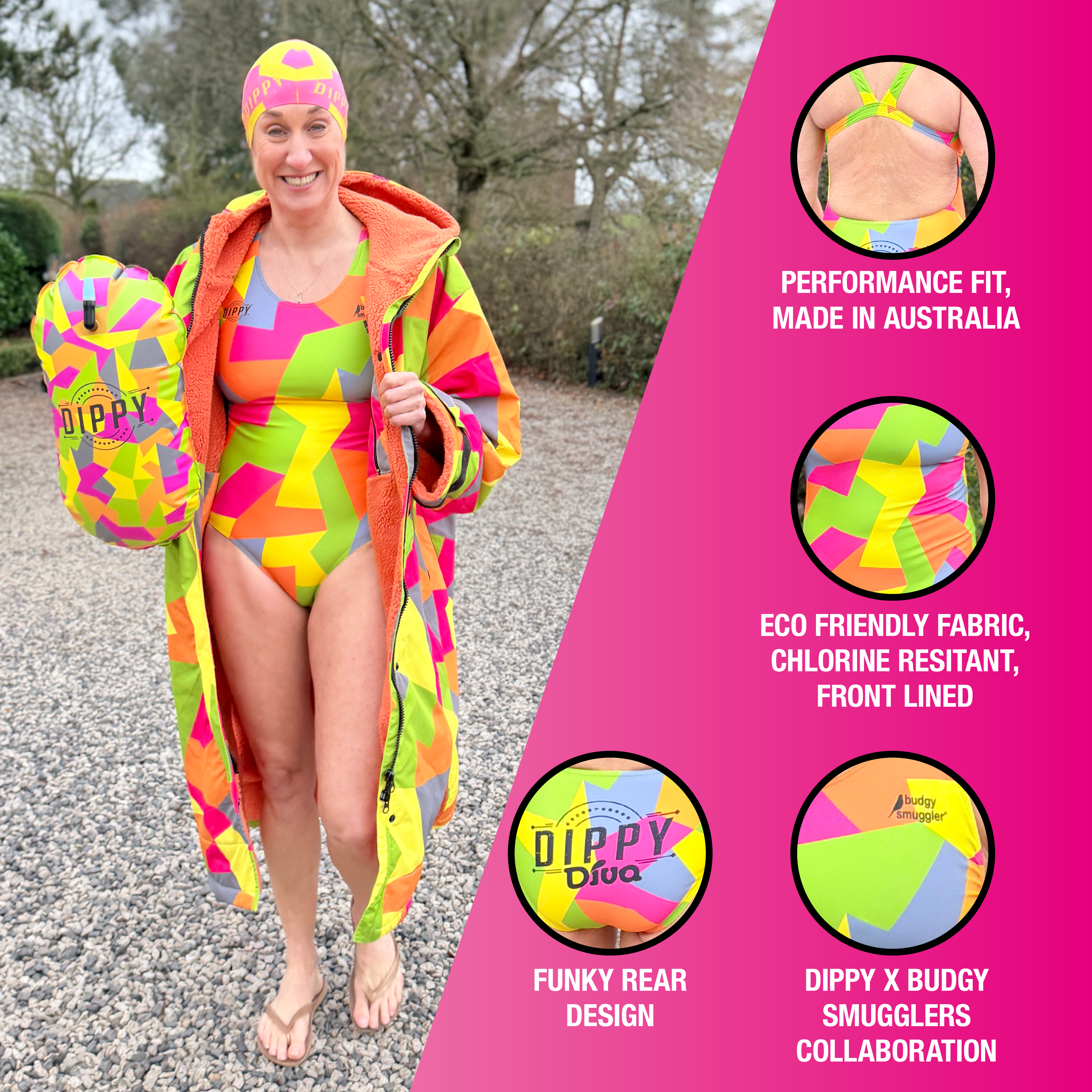 Whether you’re training, racing, or enjoying a wild swim, the Dippy Geo Racer Swimsuit delivers comfort, durability, and bold style every time.
