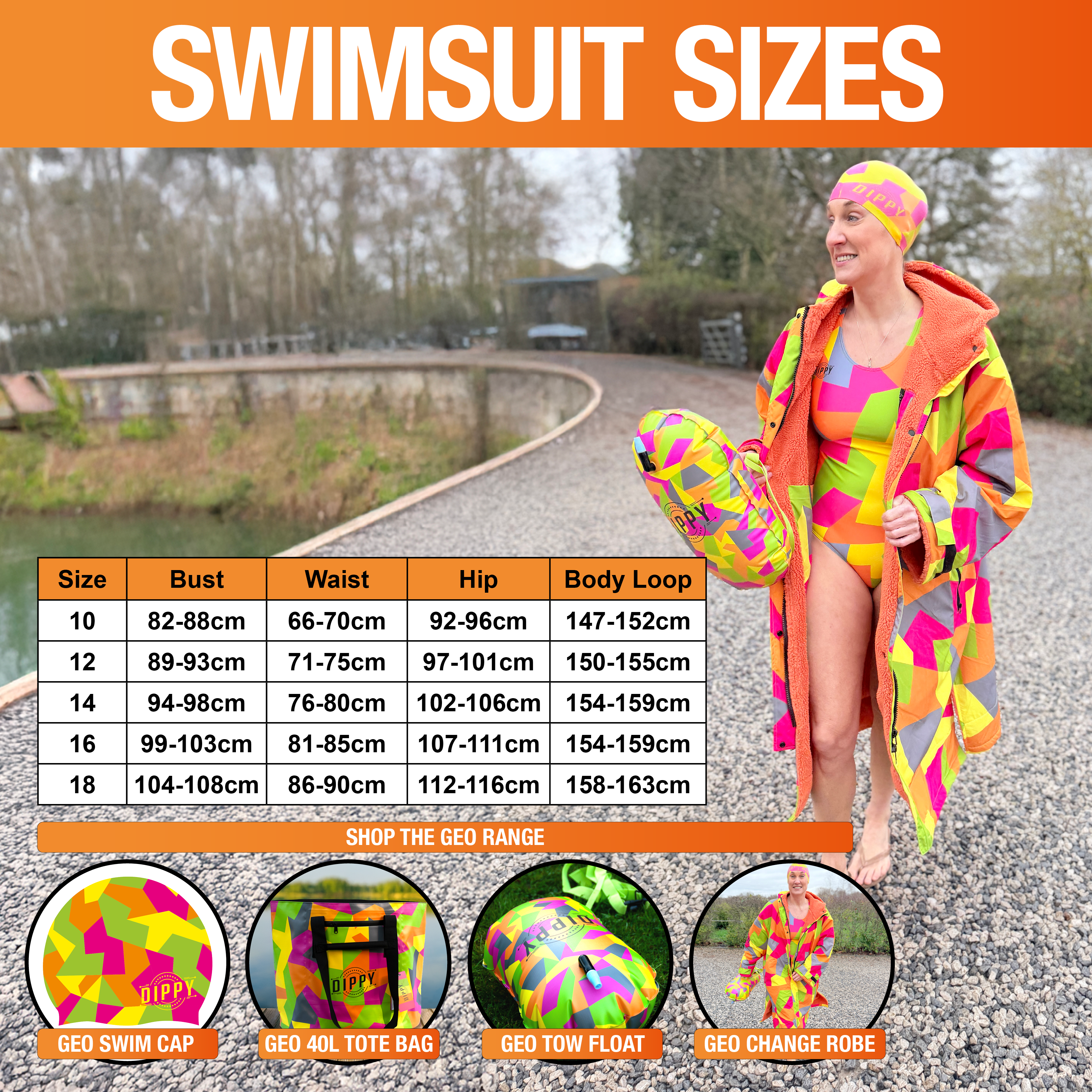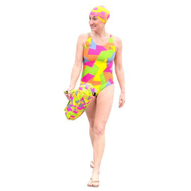- Eye-Catching Geo Design: Bold, vibrant pattern for swimmers who love to stand out.