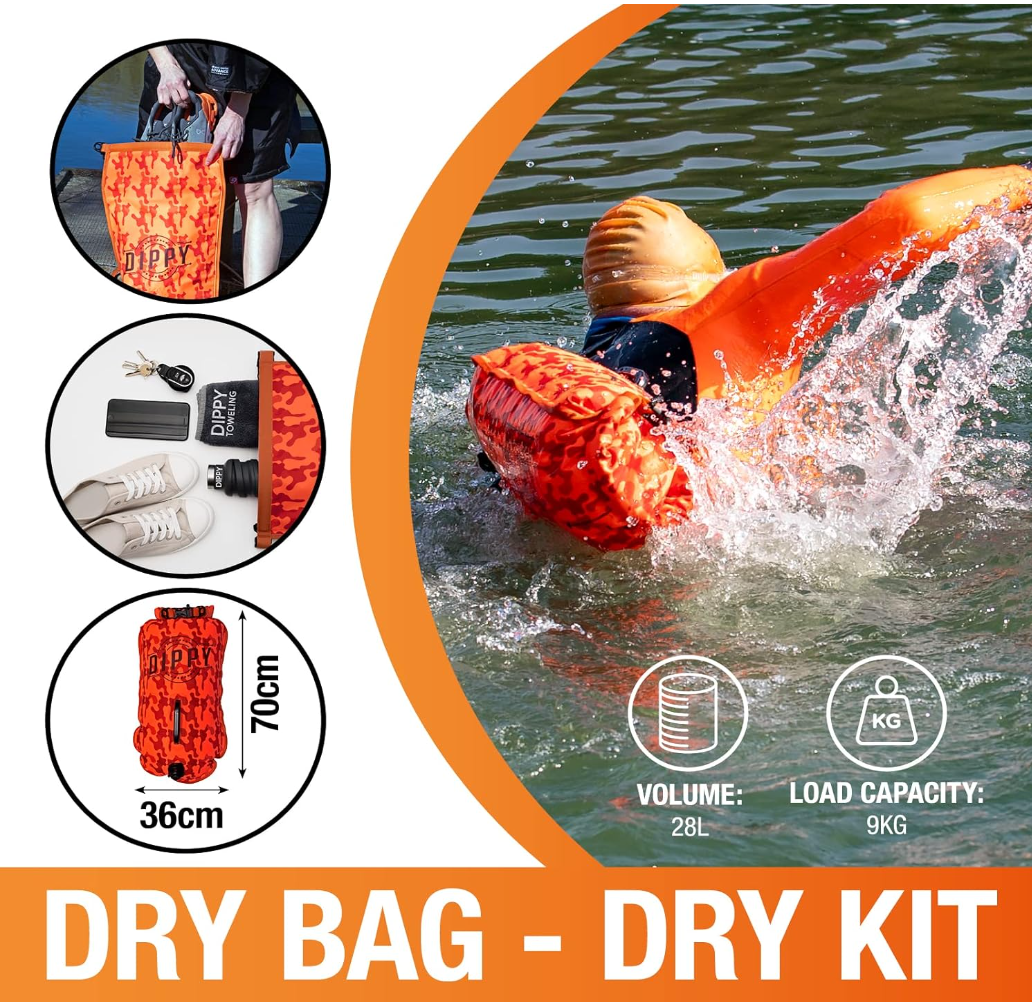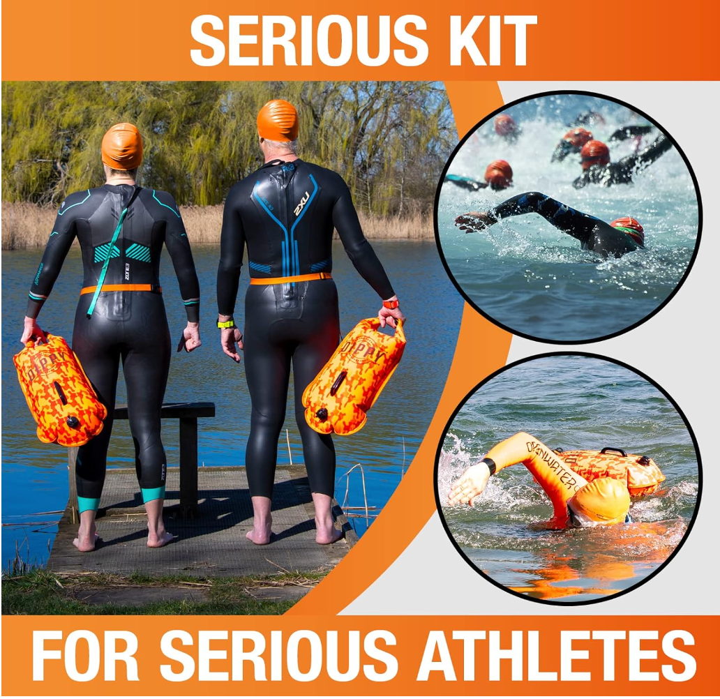 Keep Your Kit Dry: Our waterproof 28-litre capacity swim buoy dry bag ensures your valuables like keys, phone, and cash stay dry, perfect for indulging in a post-swim treat. Plus, the dual air chambers provide added security, to rest or a chance to chat mid-swim.